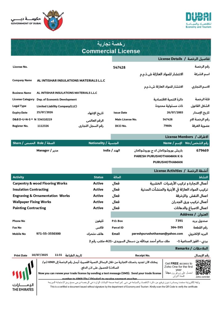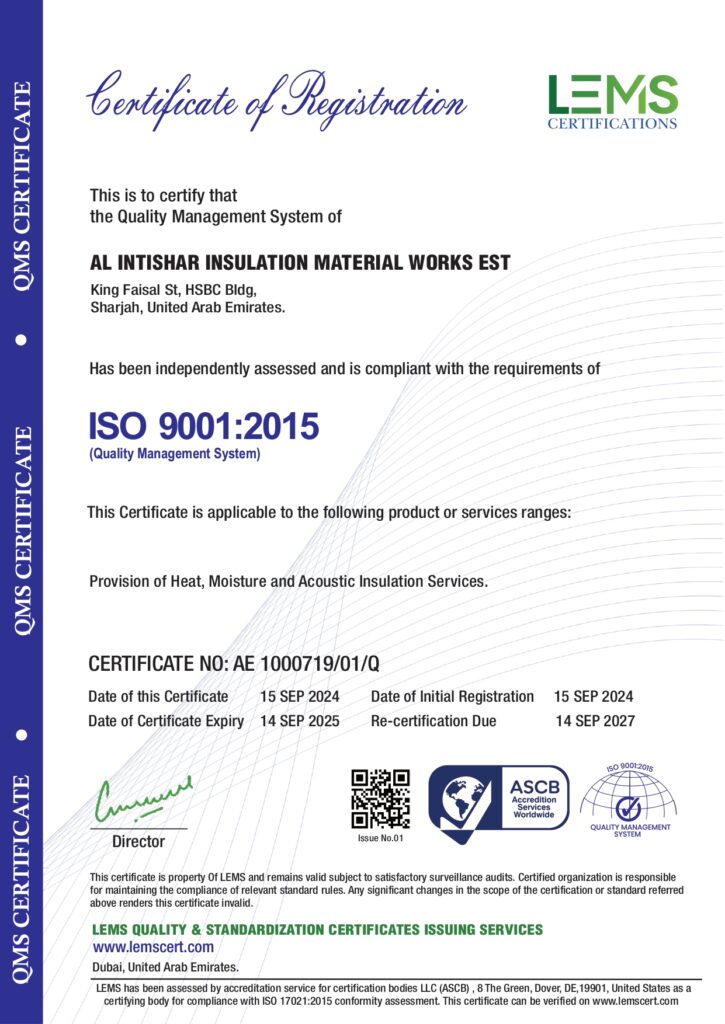 It is the policy of Al Intishar Insulations to endeavor to maintain a program of quality assurance that enables it to provide products and services which meet or exceeds the expectations of our customers.